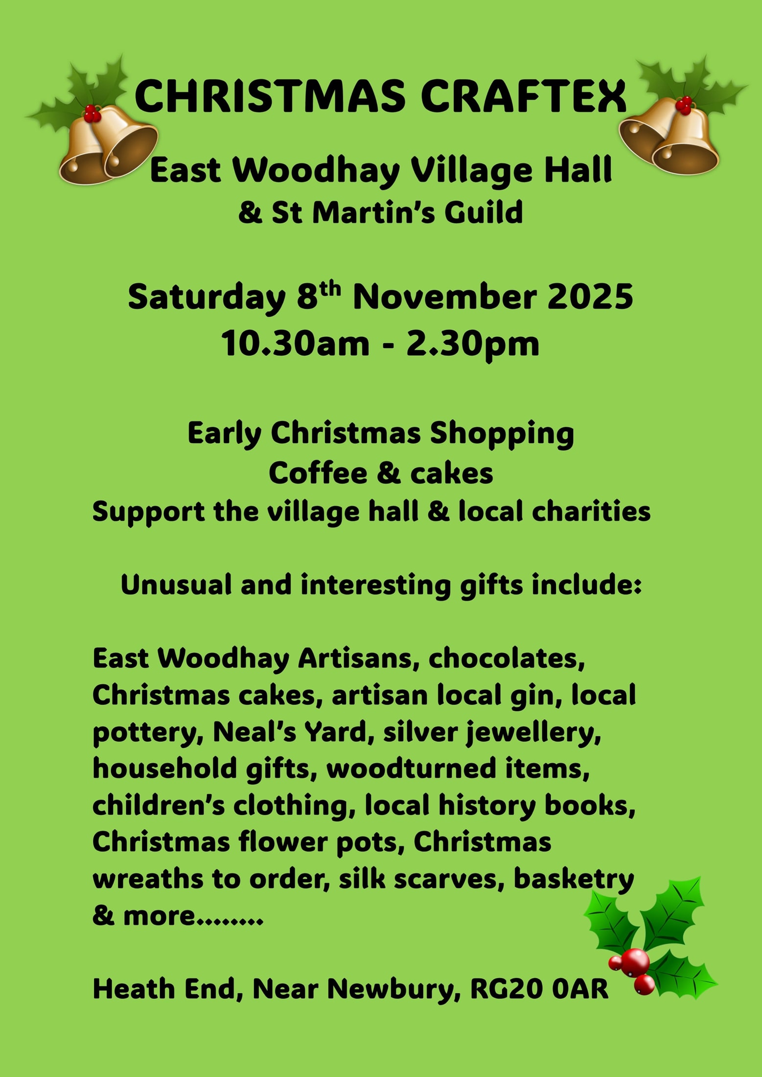 The East Woodhay Village Hall is in the hamlet of Heath End at Heath End RG20 0AR